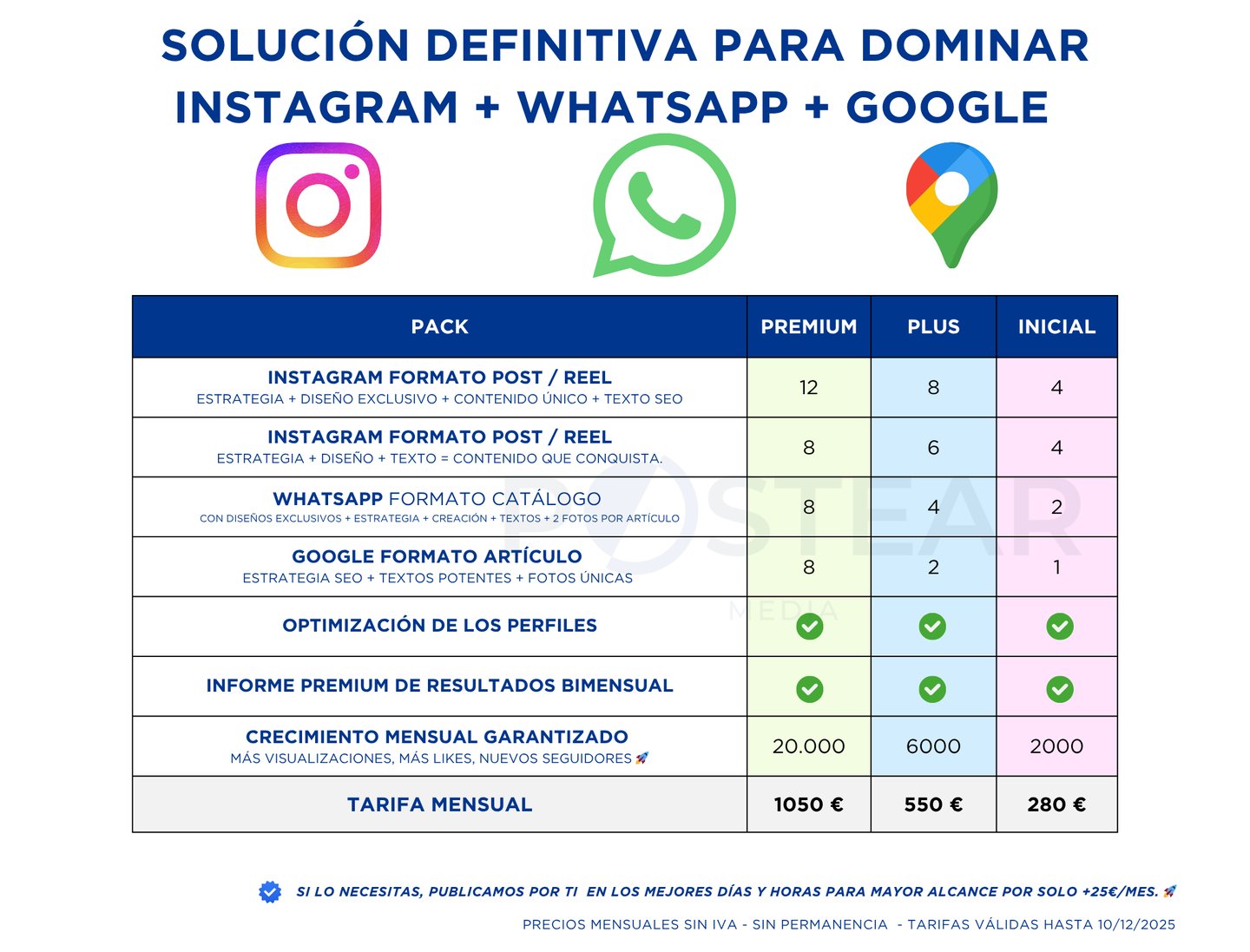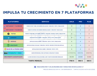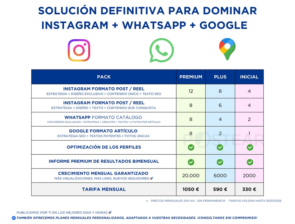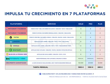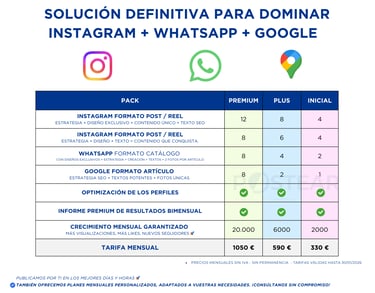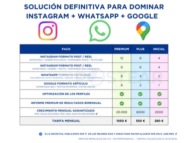 🔹 Resultados tangibles: Elige uno de nuestros packs predefinidos o elige un plan a medida, pensado exclusivamente para tu negocio.