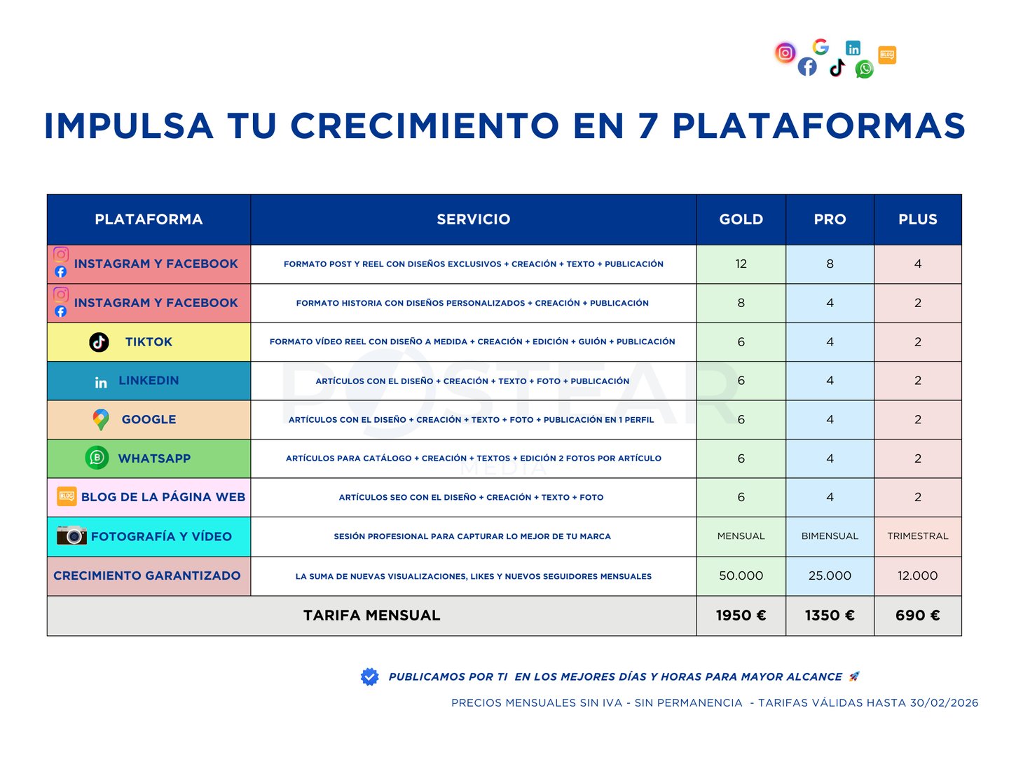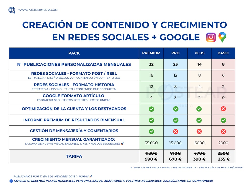 En Postear Media, te ofrecemos lo mejor de ambos mundos: packs diseñados para objetivos específicos y planes personalizados que se ajustan a las necesidades únicas de tu empresa. Sea cual sea tu elección, garantizamos una presencia digital sólida y efectiva que impulsa resultados garantizados.