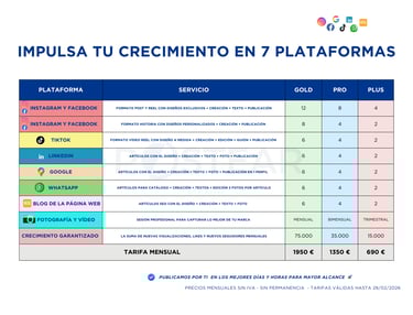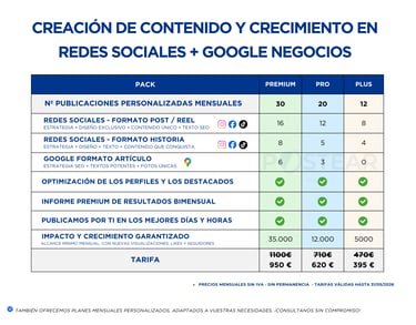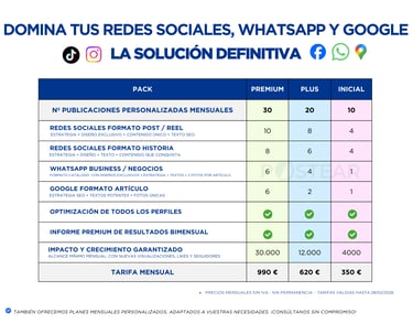 🔹 Resultados tangibles: elige entre nuestros packs predefinidos o un plan totalmente a medida, diseñado exclusivamente para tu negocio.