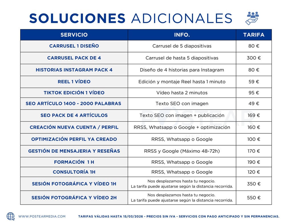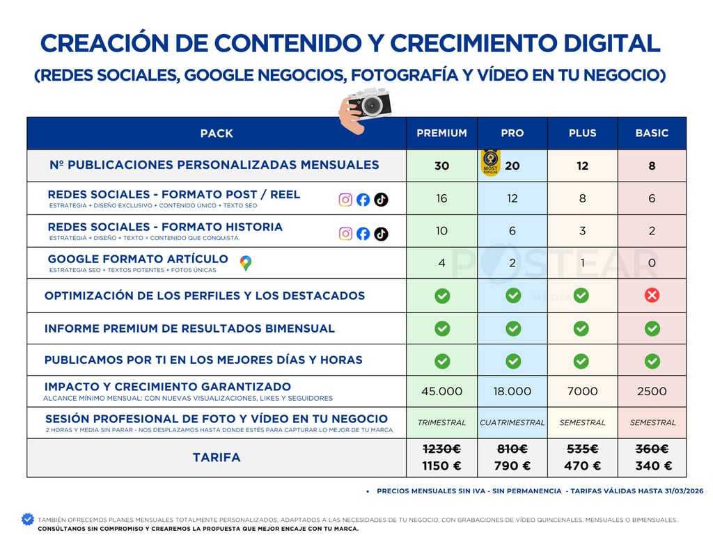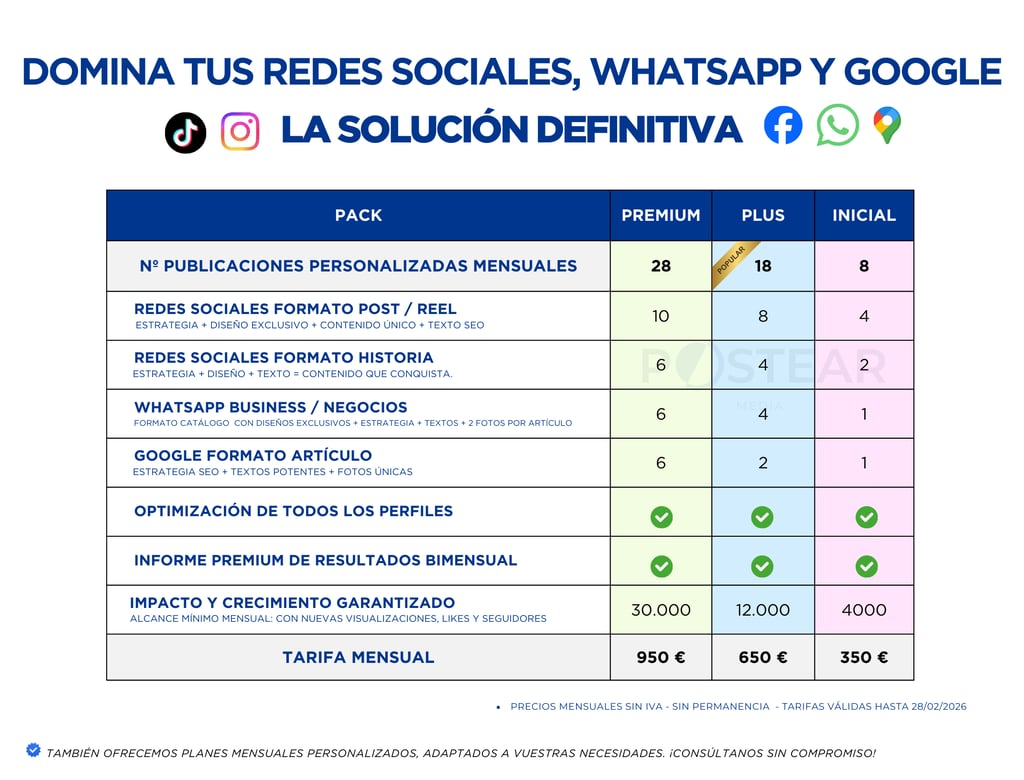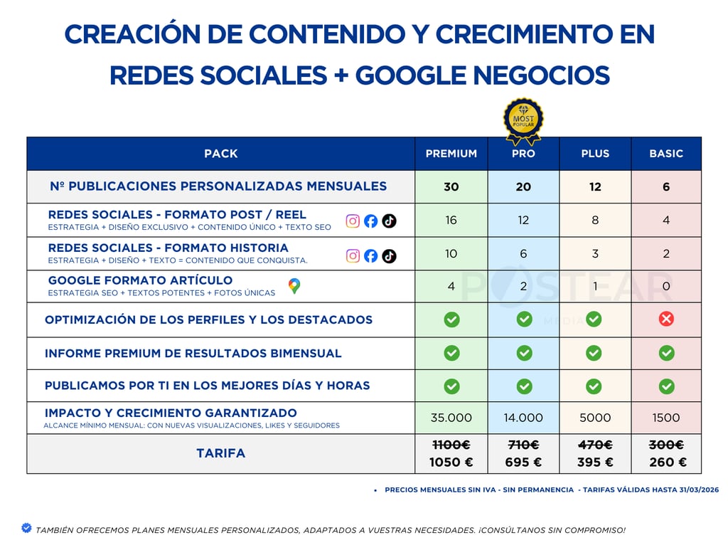 En Postear Media te ofrecemos lo mejor de ambos mundos: planes estructurados que te aportan tranquilidad y te ayudan a alcanzar objetivos concretos, y soluciones 100 % personalizadas, adaptadas a las necesidades reales de tu empresa.